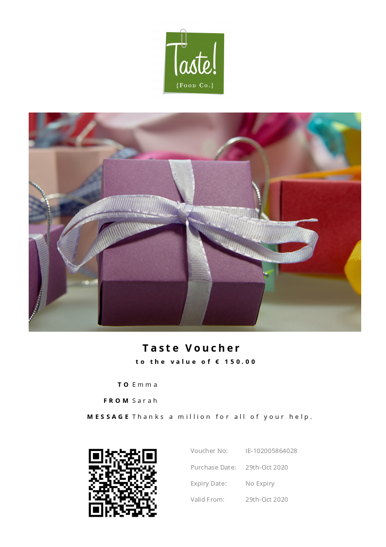 Taste allows you to purchase instantly printable gift vouchers, special offers and tickets using the Voucher Connect platform.